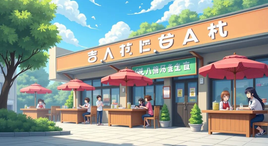 新学期开始,一楼食堂老板在门口拉出横幅:“祝同学们新学期更上一层楼!”
