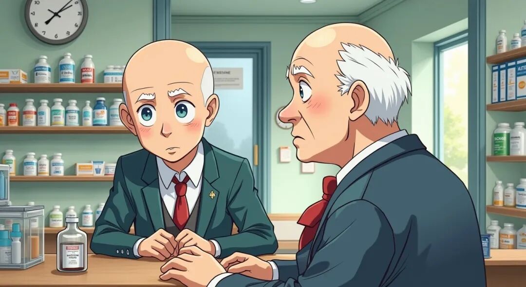 一个秃顶的老头路过一家药店,看到一种毛发再生特效药的广告,便走进去询问。