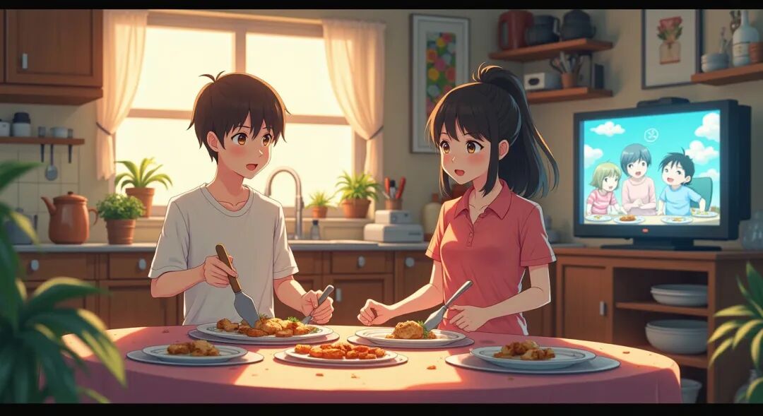 晚饭后,母亲和女儿一起在厨房里洗碗,而父亲则和儿子一起在客厅里看电视。