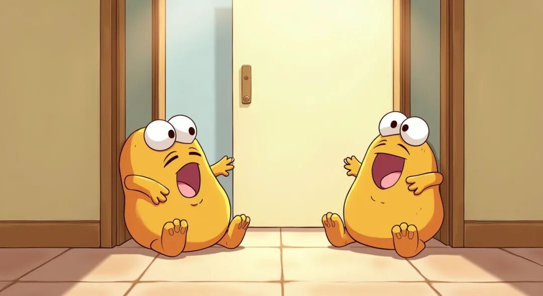 土豆说:“我手脚都是土,怕弄脏了门嘛!”