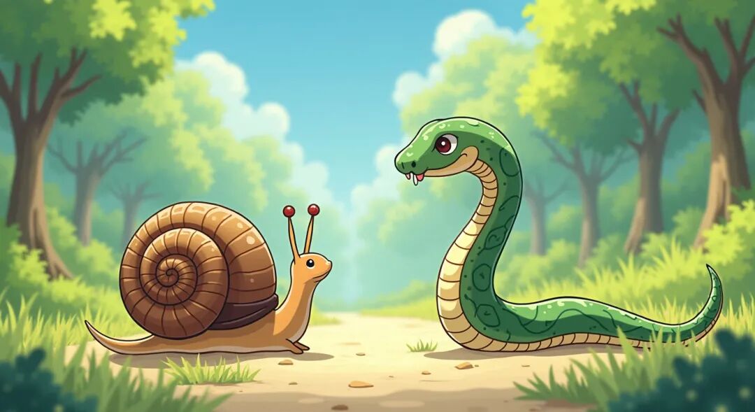 蜗牛散步时,遇到了蛇,蛇对蜗牛说:“大家都笑你走路太慢!”