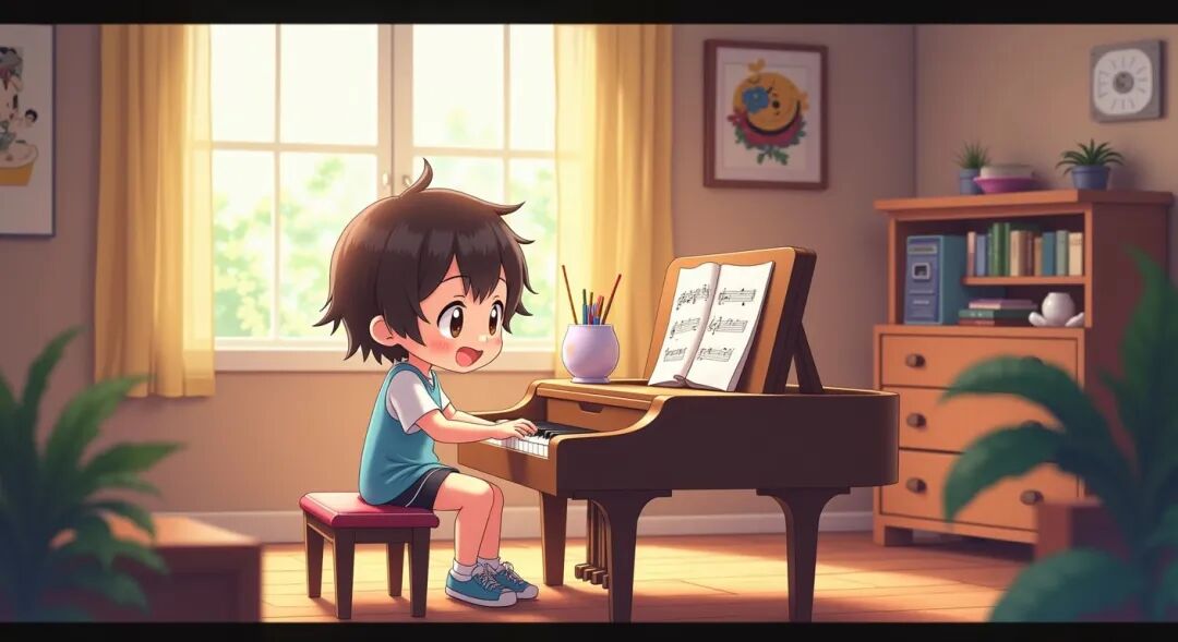 小小为朋友乐乐演奏钢琴。“我弹得怎么样?”小小问道。