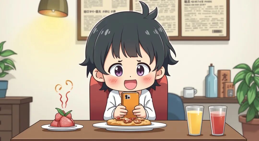 帅帅在快餐店吃过晚饭后一直坐在那儿玩手机。