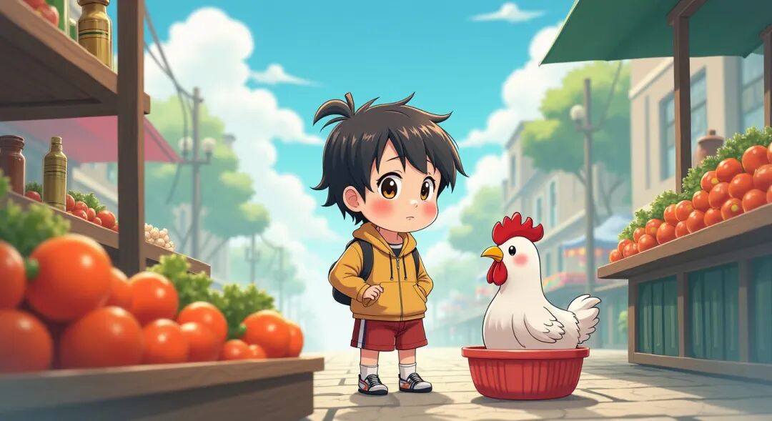 张阿姨去菜市场买菜,看到一个孩子在看摊,就问他:“一只鸡多少钱?”
