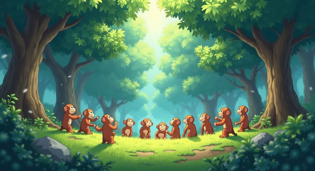 动物们立刻一群群地朝上帝跪下,指着森林里的一群猴子齐声道:“上帝啊!请您让猴子们灭绝吧!”
