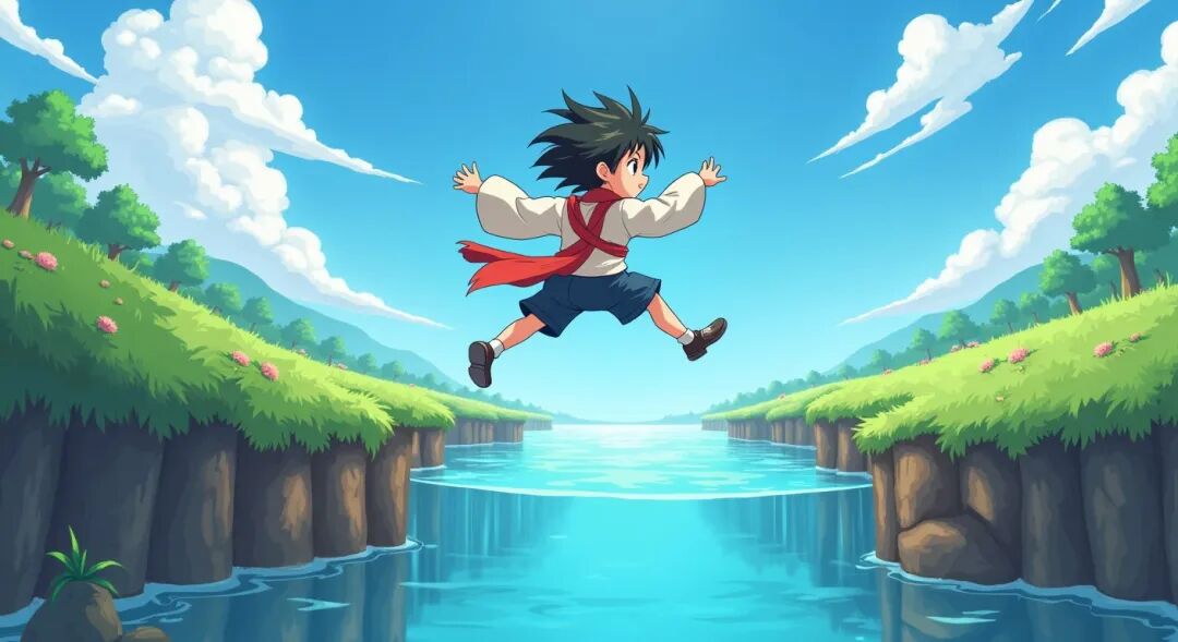 他的仆人看见后大喊:“公子,把胆子放大点,跳!”