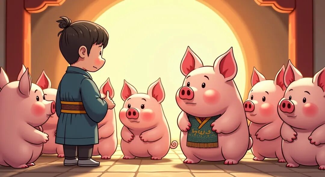 一个商人买了6 只来自中国的猪,想献给王侯,可是6是个不吉祥的数字,必须是3,5,或7只才行,他就加进一只日本猪,凑了7只,献进了王宫。