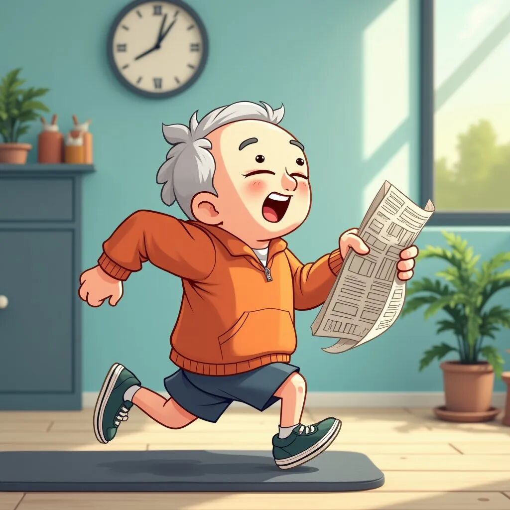 小刘第一次去健身房,看到大家都在热火朝天地运动,他也不甘示弱,开始猛跑起来。不一会儿,他就累得气喘吁吁,心想:“这健身果然不易啊。”突然,他发现旁边的大叔居然还能一边跑步一边看报纸!小刘忍不住问:“大叔,你怎么这么厉害?”大叔笑着说:“小伙子,我这是慢跑,报纸已经看了半小时了,你才坚持了五分钟,要加油啊!”