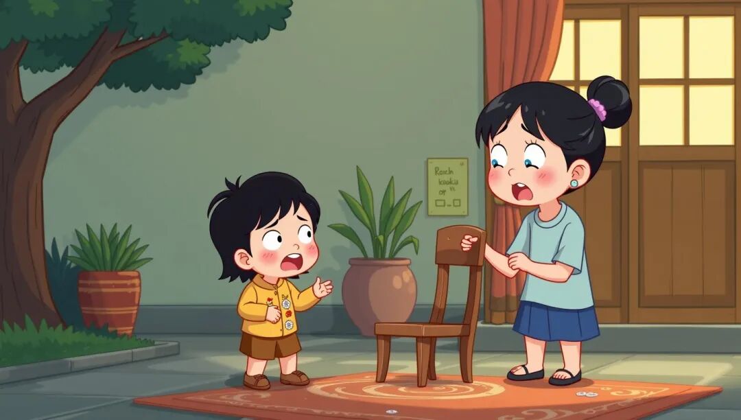 小明抽泣着回答:“今天有客人来家里玩,哥哥在客人的椅子上放了一颗图钉,我看到了。”