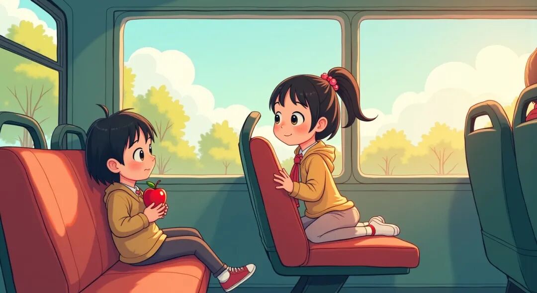 早上七点多,小明乘坐公交车前往学校。车厢内人声鼎沸,幸好他抢到了一个座位,心中暗自窃喜。突然,一个小女孩手里拿着一个红彤彤的苹果,走到他面前说:“我用这个苹果换你的座位可以吗?”