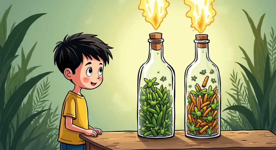 为了让学生们了解烟酒对身体的危害,班主任采取了一种生动的教学方式。她拿来了两只大敞口瓶,分别捕捉了许多大青虫。