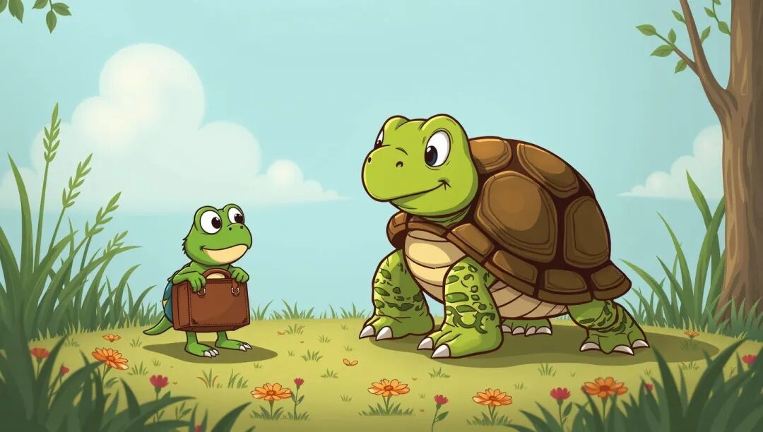 一旁观察的青蛙感到非常敬佩,赞扬道:“哎呀,鳖兄真是风光无限,连行走都带着如此气派。”