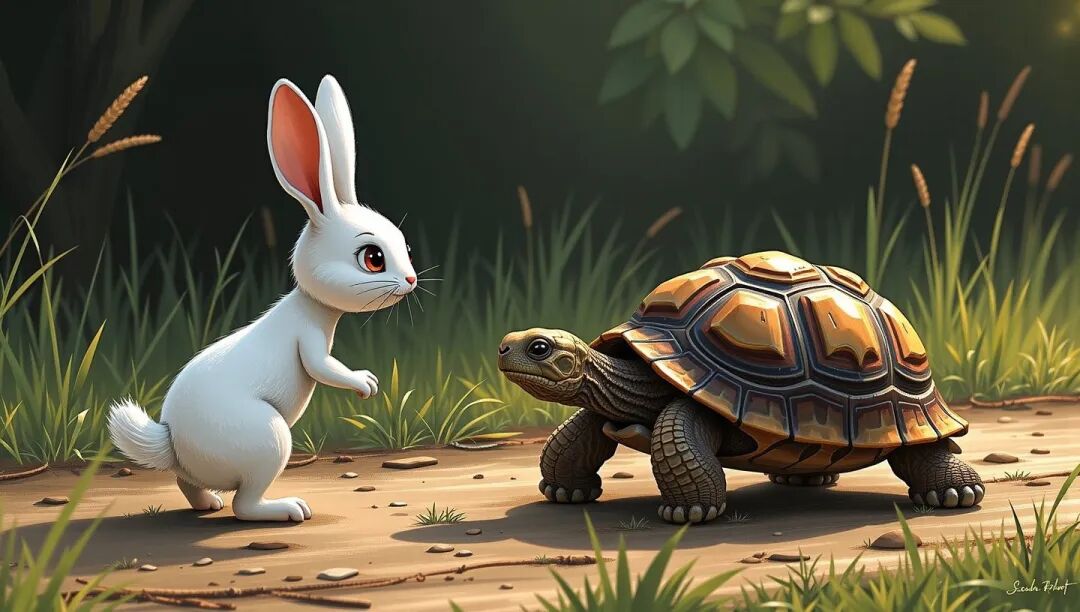 兔子很奇怪,问乌龟:“你又是怎么赢我的?”