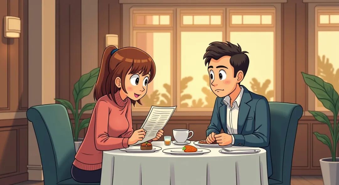 男的也打量着菜单回答:“超过咸牛肉,但还没到烤龙虾的地步。”