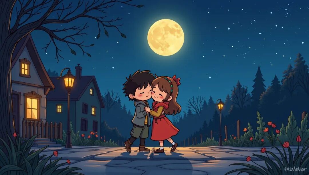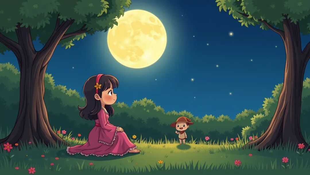 月夜,公园中。姑娘:“再也没有比我不幸的女子了,谁也不爱我。”