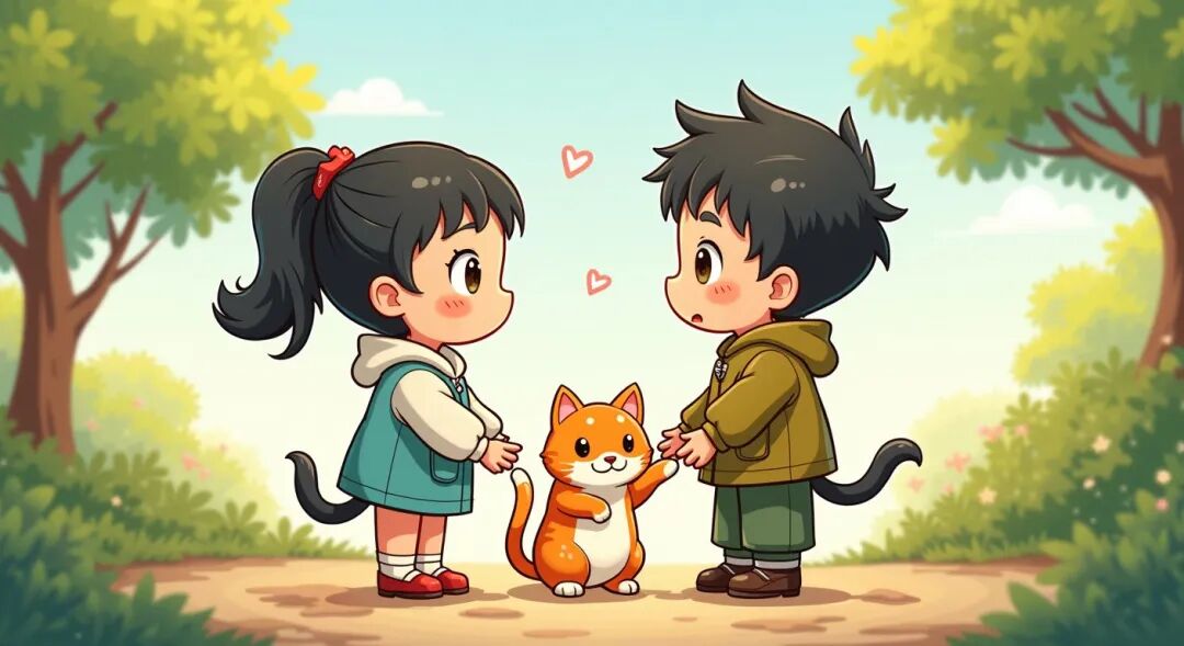 小华与小兵正在热恋之中,小华家有一只母猫,小兵家有只公猫。一次,小华与小兵在公里散步,他们各自家的猫也跟在了身后。