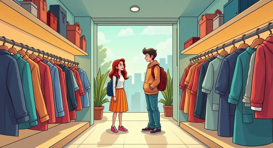 在一家时装店,一个等得不耐烦的青年人对一个漂亮女孩说:“你介意和我说几句话吗?”