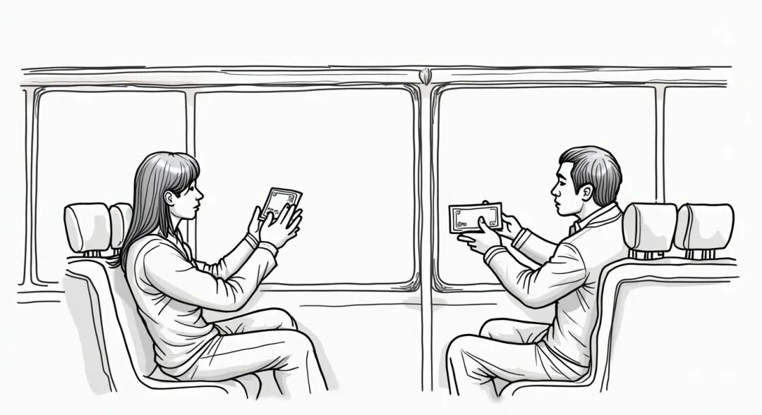 科恩和格林坐在火车上,科恩头上方的行李架上放着一口大箱子。乘务员来了,对科恩说:“这口箱子不能当作手提行李随身带,必须托运。”