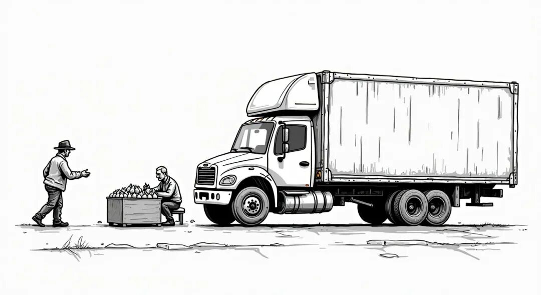 货车司机将货物装载完毕,准备出发,开始倒车。就在车尾不远处,有一位卖梨的老年摊主。车内响起女声警告:“倒车……倒车……”