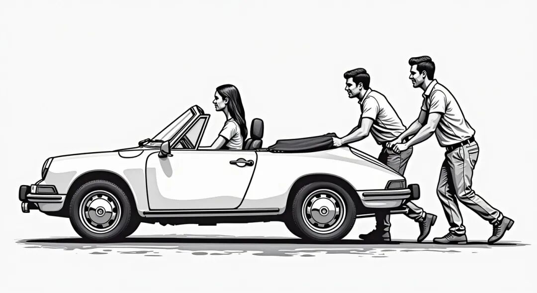 两名男士立即上前卖力地推车,这样他们推着车越过了几个街区。过了一会,一名筋疲力尽的男人抬头一看,正好看见他们刚刚路过了一个加油站“你为什么不把车拐进去?”他大声喊着。