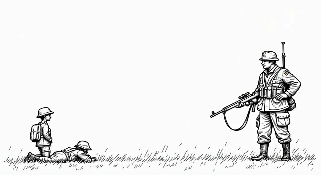 士兵直起腰杆,自豪地回答:“报告将军阁下,我没有立即采取行动是因为我担心敌人会派一个射击更加精准的狙击手来替换他。”