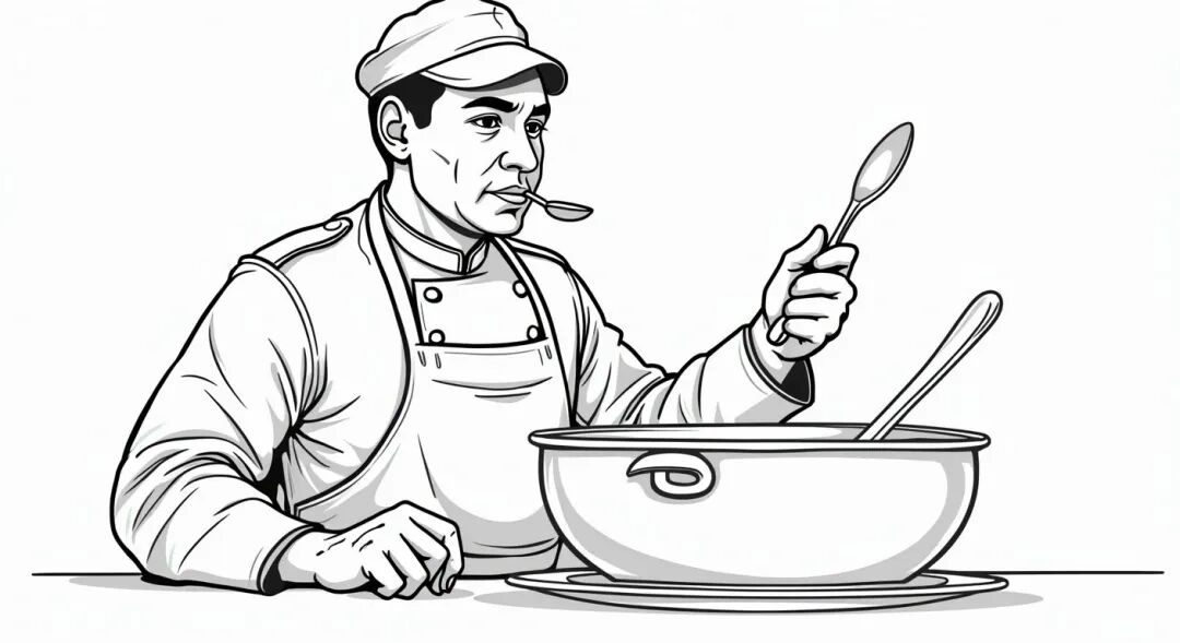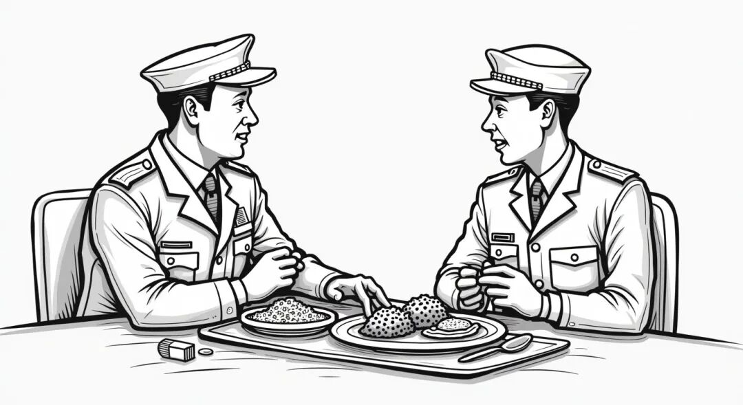 苏亚雷斯将军十分挂念士兵的日常生活。某天,他决定前往厨房,亲自尝试一下士兵们所吃的食物。他走到汤锅旁,开口道:“给我来一勺。”