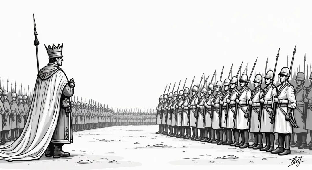 他身着戎装,神气十足地在队伍前巡视一番,深为有这样的部队而得意,得意之余,他突发奇问:“军人们,如果我下令要你们对我开枪,你们会执行命令吗?”