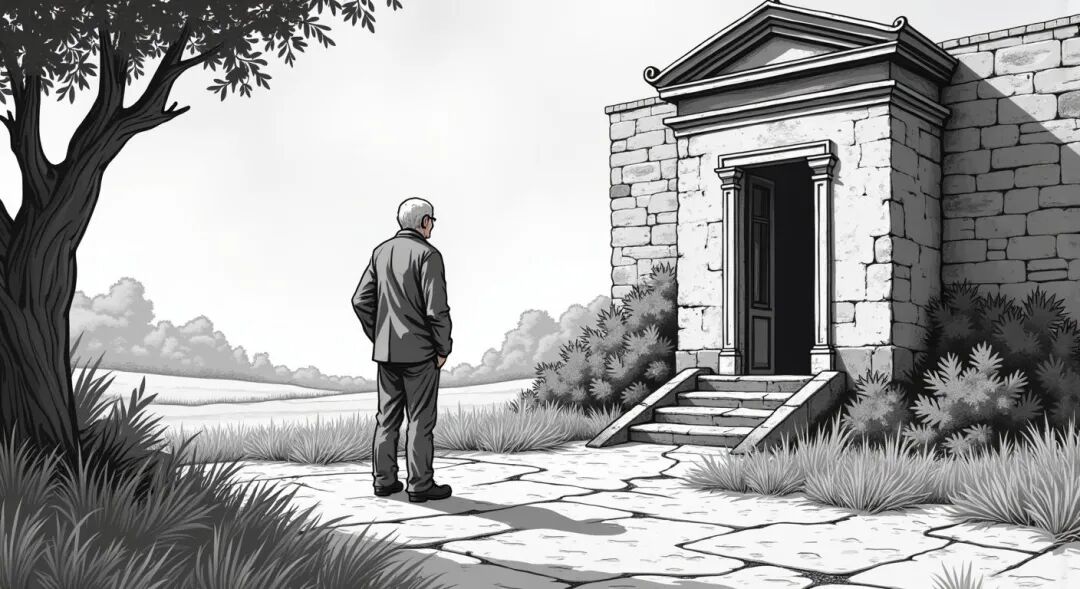 这时老人看见一个比他更老的从破庙的角落里走出来。 老人大惊:“你是上苍吗?”更老的人说:“混蛋! 在二十多年前你就把我赶出来了,我是你爸爸呀,你已经不认识我了?”