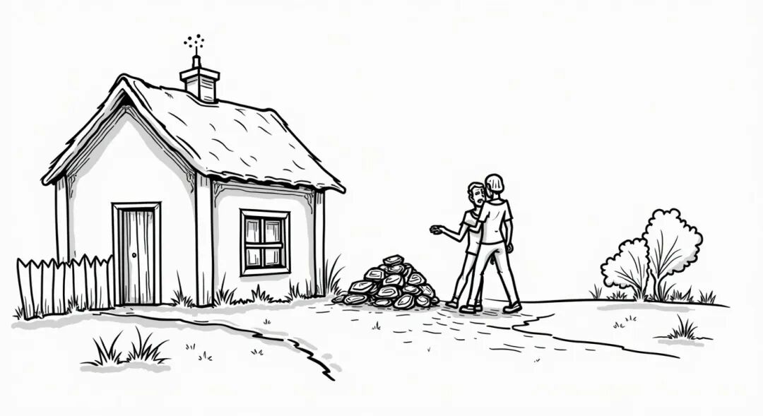 妻子走近窗口,看到铁匠正在用煤铲打老婆呢! 妻子回家后,丈夫问她看见了什么,她始终不肯说。最后,丈夫气急了,拿起煤铲打她。