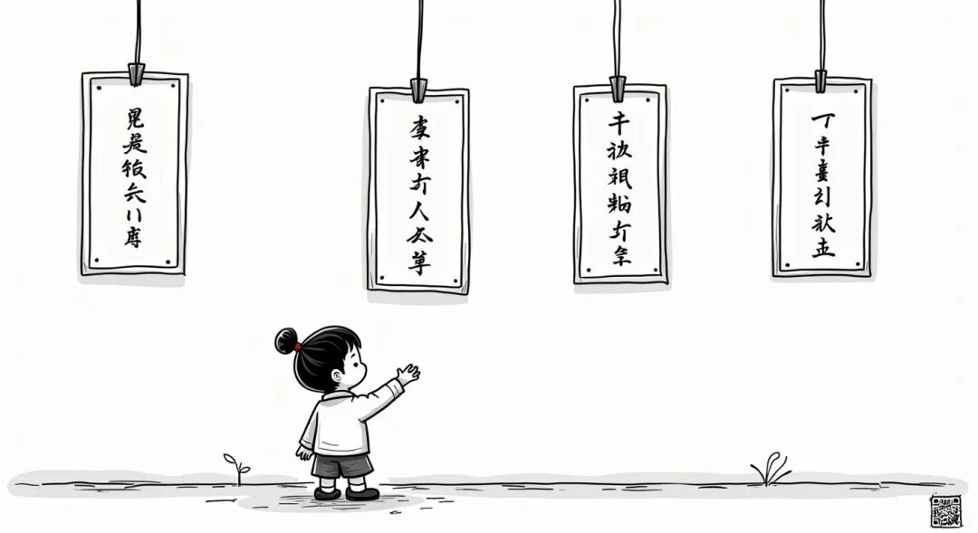 当他把画挂好后,芳芳左看右看都一样齐,于是报告说:“爸,不发财,也不健康。”