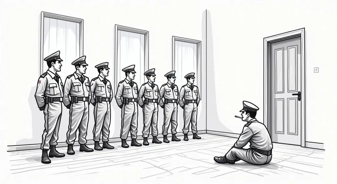 士兵们正准备相视一笑,突然间,一声愤怒的吼叫传来:“如果你们的步伐一致,撞到墙上,我应该只听到一个声音!”指挥官大声责骂着。