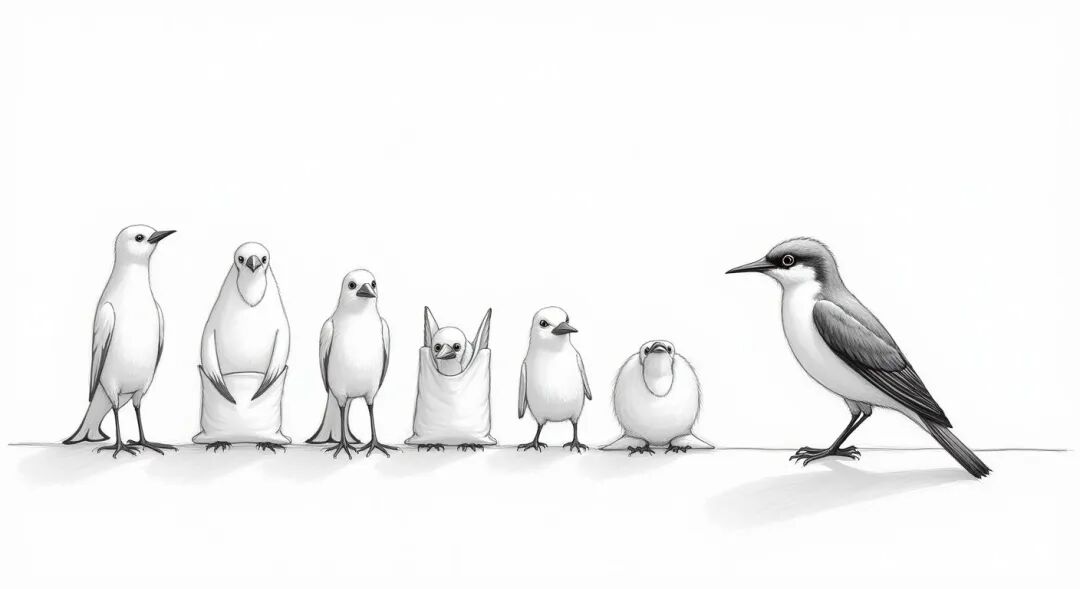 一位大学生观察了每只鸟的腿,但这些鸟在他看来,似乎没什么不同,他越看越气恼,起身对教授说:“这样的考试太无聊了,谁能做到看腿识鸟?”