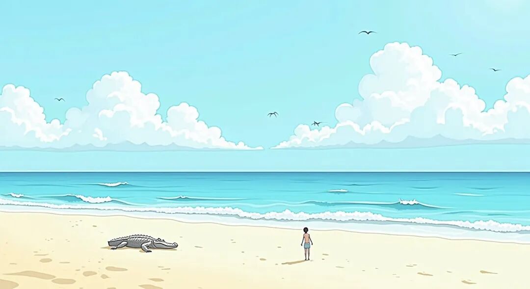 佛罗里达的海滩和蓝天,对一个来自北方的旅客显得格外迷人。 游客正要去游泳,就问导游:“你能肯定这里没有鳄鱼吗?”