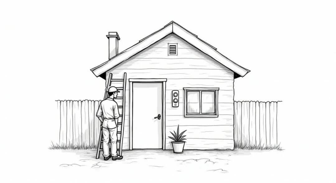 一个吝啬鬼请工人帮他装个门铃,在他回去的时候看见工人搭着梯子在大门上方在弄着什么东西。