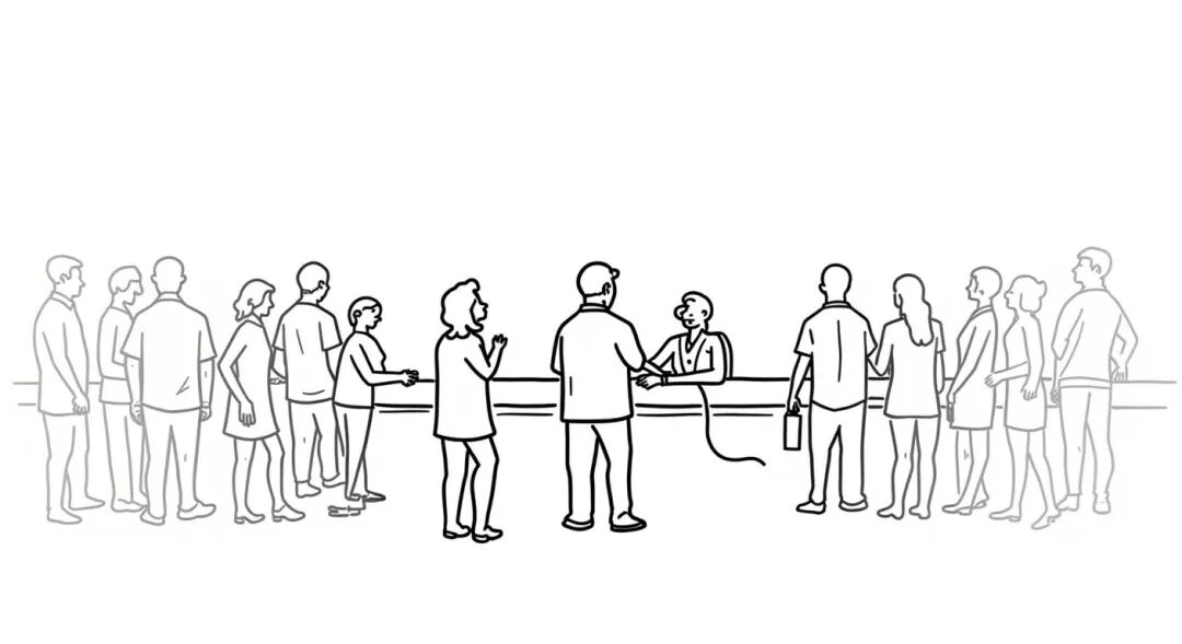 某日在丹佛机场的一班联合航空班机因故停飞,机场柜台人员必须协助大批该班机旅客转搭其它飞机。柜台前排满了办手续的人,这时有一位老兄从排队的人群里一路挤到柜台前,将机票甩在柜台上并说:“我一定得上这班飞机而且是头等舱!”服务的小姐很客气的回答:“先生,我很乐意替您服务,但我得先替这些排在你前面的人服务。”