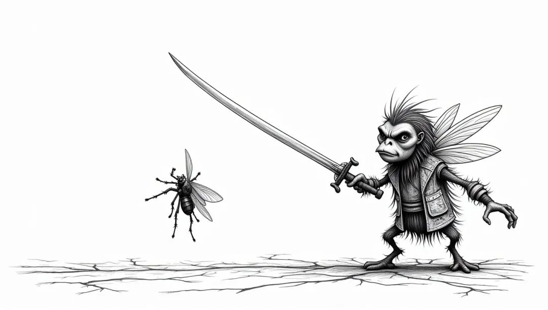 只见他挥剑成,直向一只苍蝇劈下,但是那只苍蝇依然如故。世界排名第一的剑手竟然没有劈中目标,全场观众哗然。