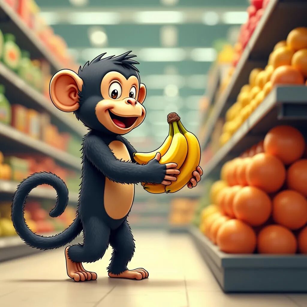 小猴子走进超市,兴高采烈地拿了一串香蕉到柜台上。老板问:“你要不要再带点别的水果?”小猴子认真地说:“不用了,我又不开水果店。”老板顿时无语,没想到猴子比他还会打趣呢!