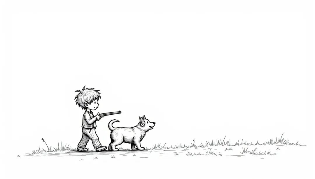 终于,叔叔灵机一动,想出了一个好主意。他对侄子提议:“带上猎枪和狗,我们去山上打猎吧。”侄子闻言立刻兴奋起来,拿起猎枪,牵着狗兴冲冲地出发了。数小时后,侄子满载而归。