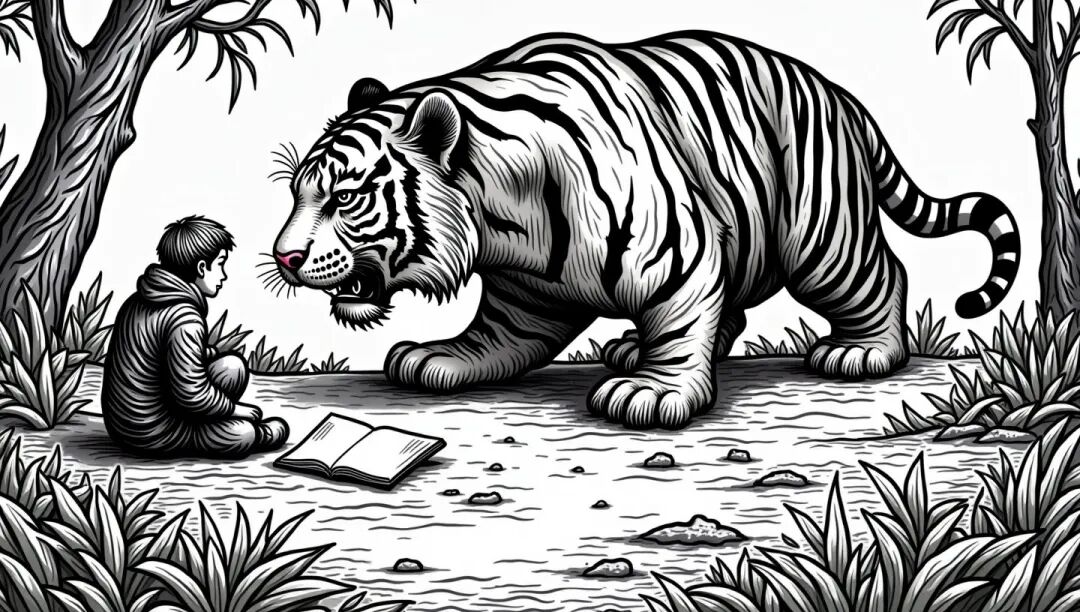 黑虎的爸爸听说写文章可赚大钱,于是叫黑虎也写文章。