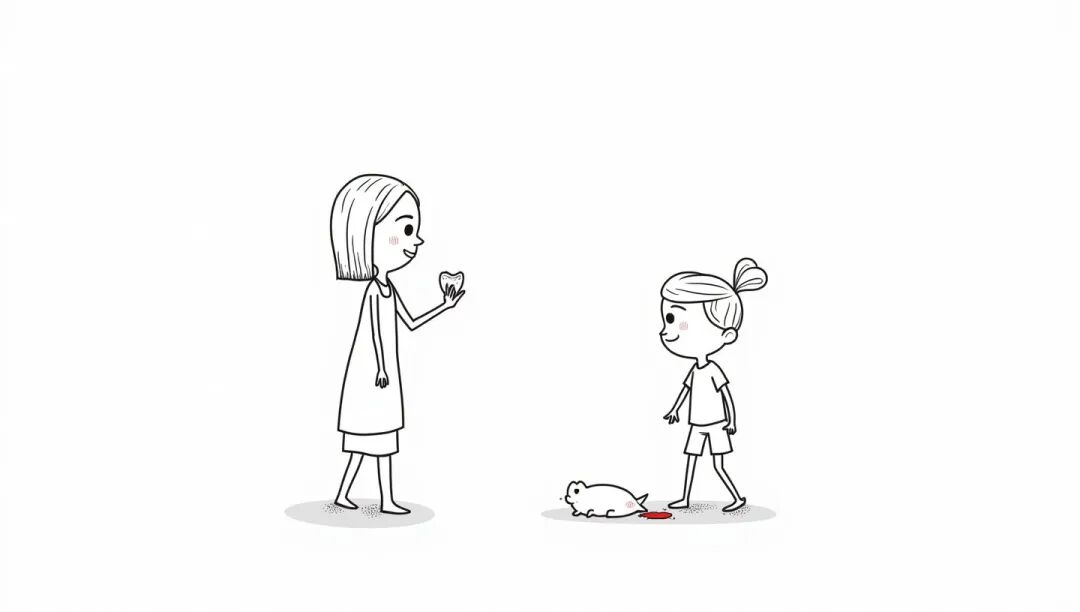 杰尼急忙说道:“妈妈,牙齿没有丢,我把它们放在口袋里了!”