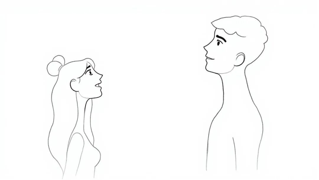 夫妻两人坐在公园的长凳上,丈夫隔不久就要向妻子的眼睛注视一会儿。妻子满怀喜悦地对丈夫说:“亲爱的,自从结婚以后,你就很少像现在这样深情地注视过我了。”