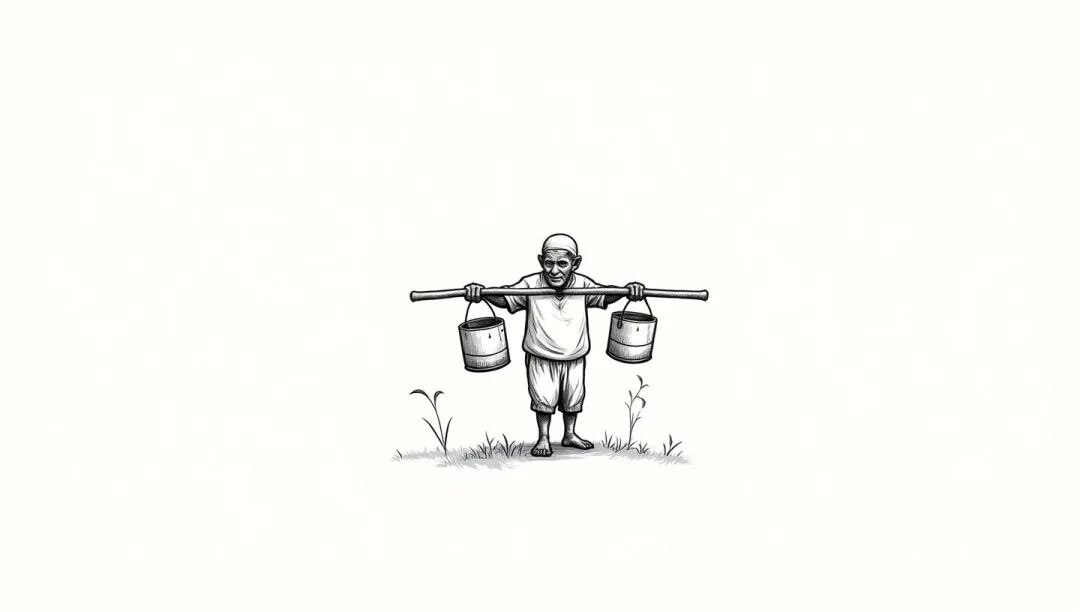 新婚夫妇刚送走一批前来吃喜酒的客人,只见新郎年过八旬的父亲从街上颤巍巍地挑着一担水,走进院内。新娘见状,不由柳眉微皱,她一把拉过新郎,低声指责道:“看老人家那么大年纪,挑这么两大桶怎么受得了?要是让外人看见了,会说我们小辈不孝顺。”