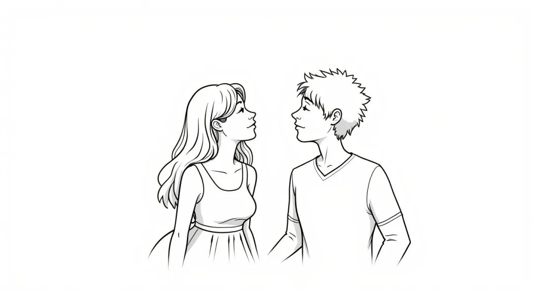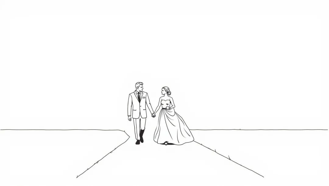 一对青年男女,从结婚登记处领证出来,在路上边走边谈。