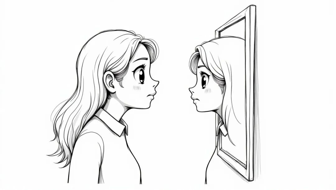 坐在一旁观察已久的小伙子说:“如果你偶尔照一次镜子,就那么伤心,那我们天天看着你,又怎么办?”