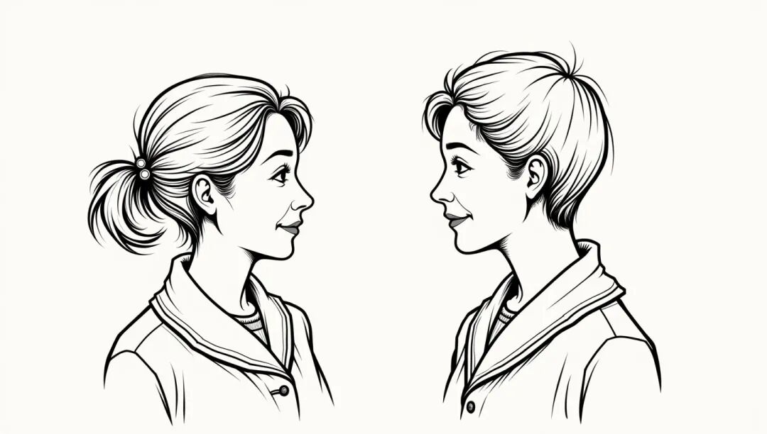 姑娘心血来潮,站在镜子前仔细端详,发现自己的脸竟是那样难看,不禁放声大哭。
