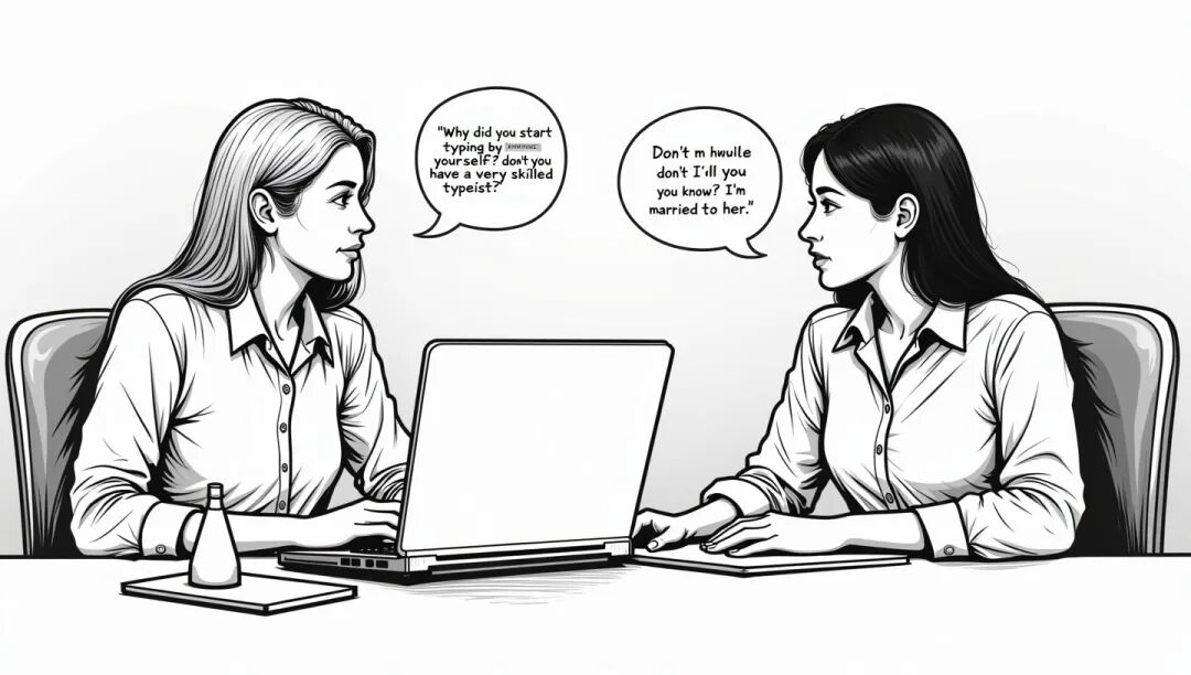 两位朋友在交谈,“你怎么竟自己打起字来啦,你不是有一位很熟练的打字员吗?”