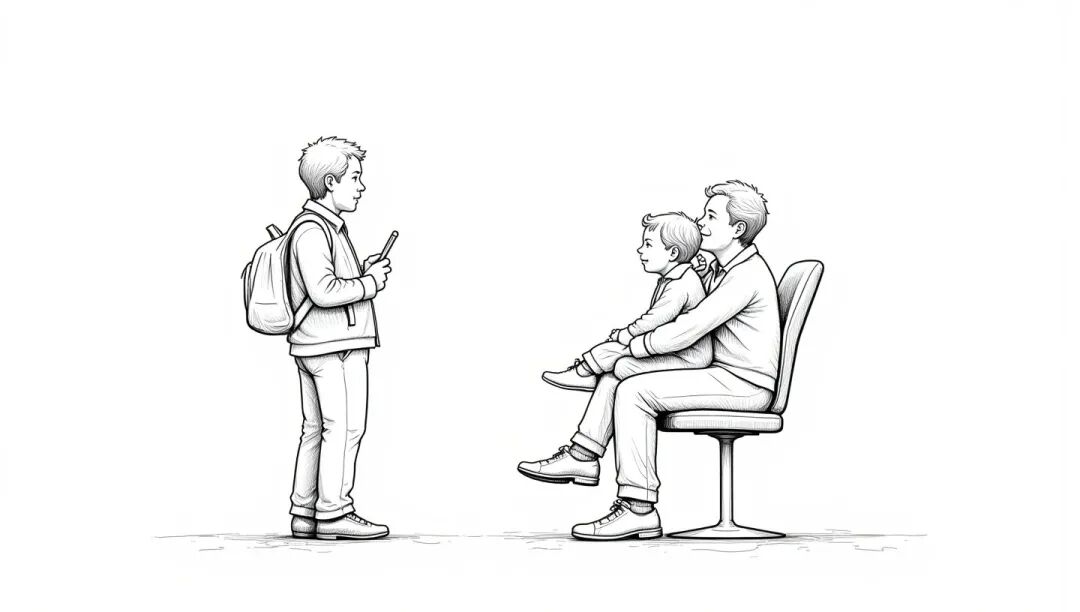 坐在男青年膝盖上的孩子听了这话高兴地说:“爸爸,爸爸,妈妈要受表扬啦!”