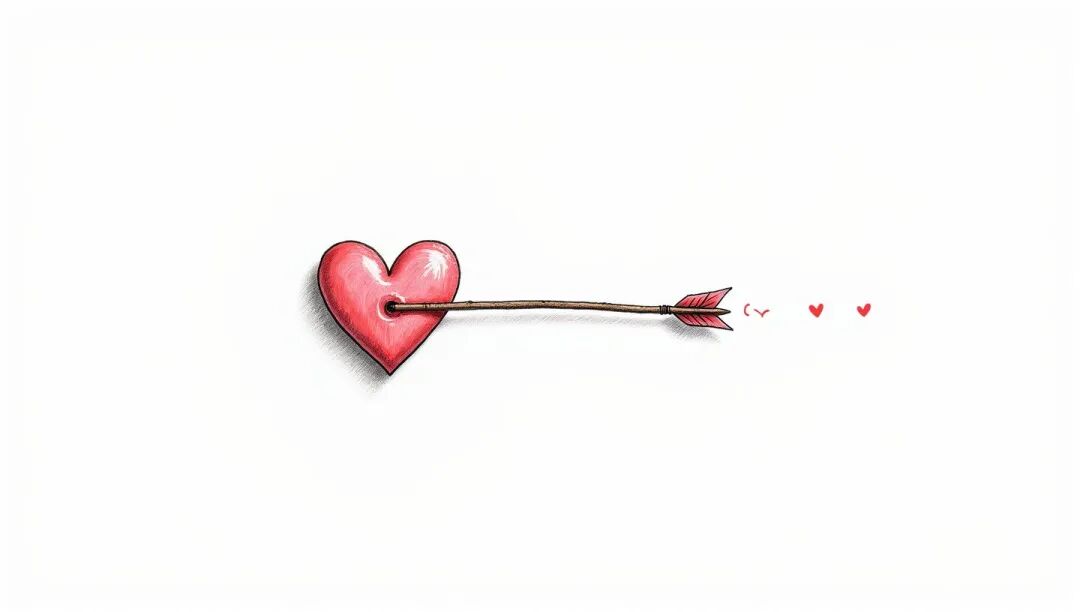 小伙子画了一颗被箭刺伤的心。为了表示爱有多深,他在箭上多画了几颗受伤的心,旁边写道:“瞧我多么爱你。”