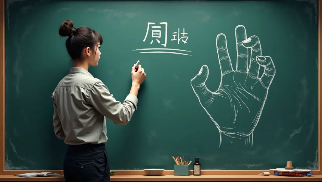 老师在黑板上写下:“我的手”三个字提问正在打瞌睡的小明。小明看了一会儿,说不认得。这位老师为了启发学生,就伸出手说:“这是什么?”