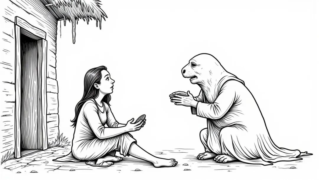 小偷以为他真的有钱,一晚去他家行窃,却发现家徒四壁,一样值钱的东西都没有,便咒骂道:“晦气,是个穷鬼。”